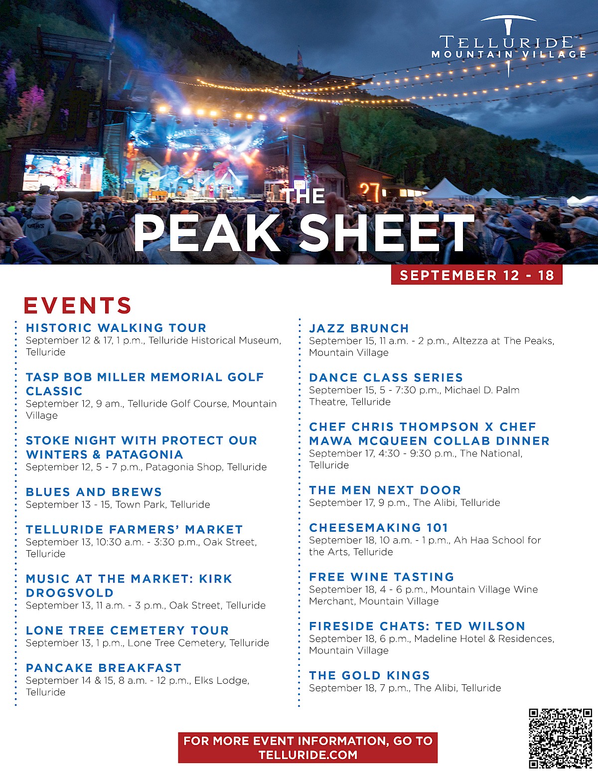 Telluride PEAK SHEET: September 12 – 18, 2024