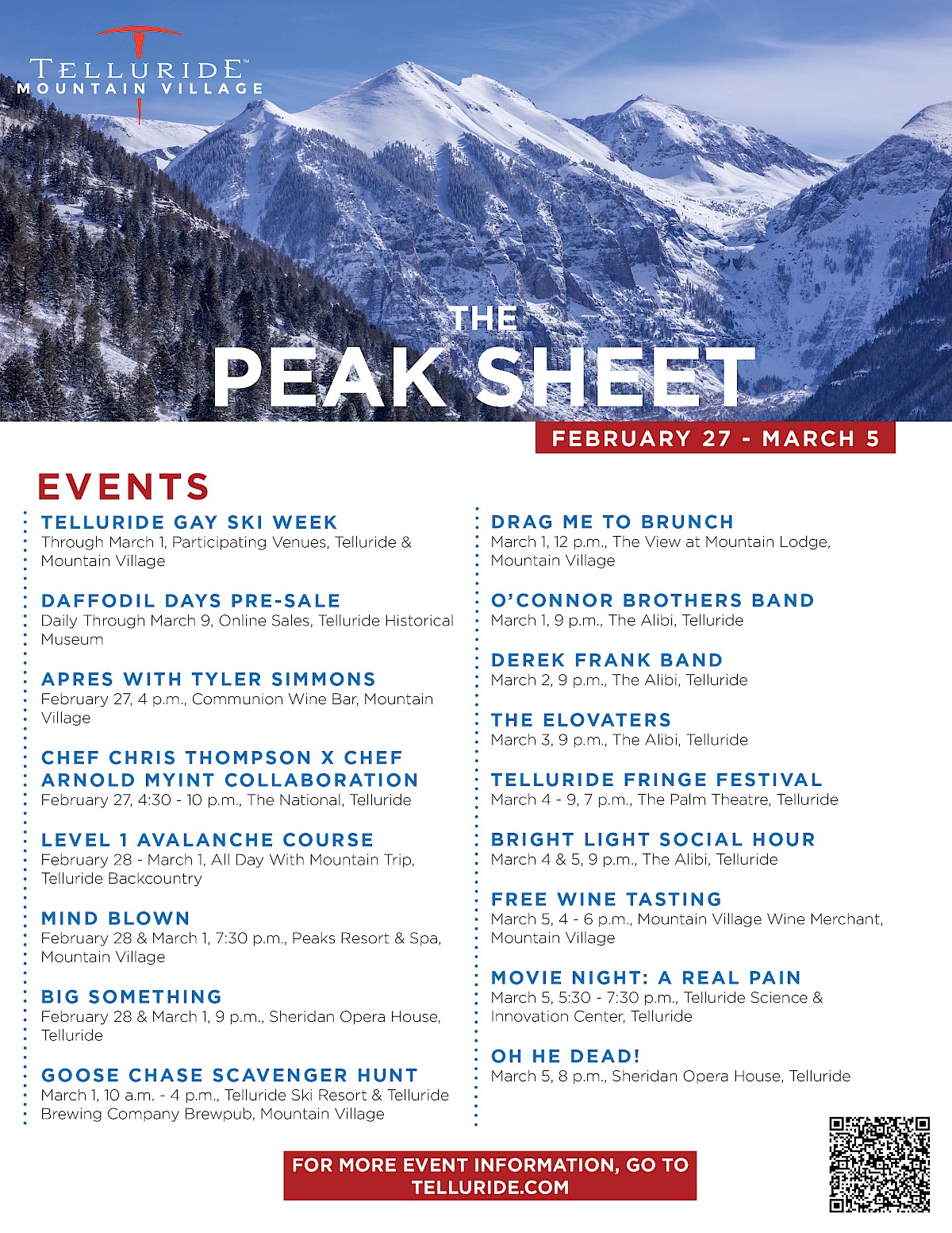 Whether you’re hitting the slopes, enjoying live music, or indulging in Telluride’s world-class dining, there’s something for everyone this week. Stay safe, have fun, and embrace all that Telluride has to offer!